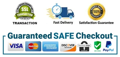 The Checkout Process is Guaranteed to be 100% Safe and Secure with Visa, Mastercard, AMex, Discover, Apple Pay or PayPal.